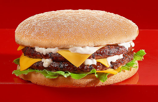 2 steaks, cheddar, oeuf, bacon, crudités, frites